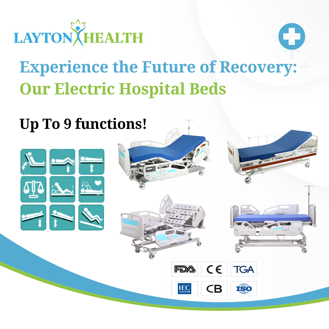 Layton Health electric beds are state-of-the-art hospital beds designed to offer maximum comfort and functionality to patients. They come in various models, including 3-function, 5-function, 7-function, and 9-function beds.